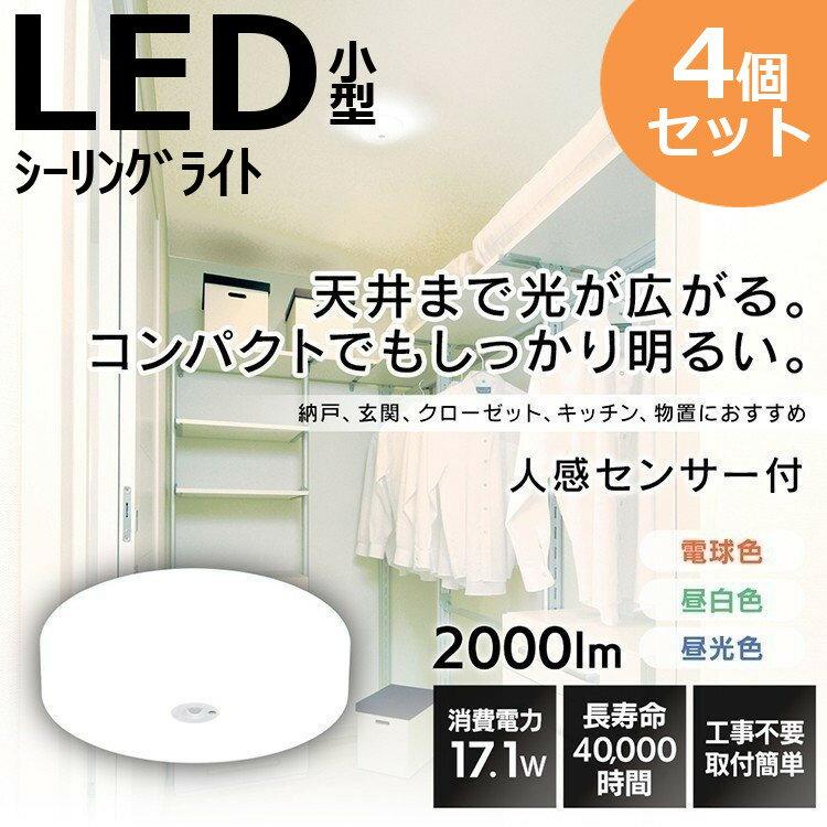 小型シーリングライト 4個セット SCL20LMSMCHL SCL20NMSMCHL SCL20DMSMCHL 送料無料 電球色 昼白色 昼光色 小型 シーリングライト LED led メタルサーキットシリーズ 2000lm 明かり 照明 照明器具 省エネ 節電 電気 コンパクト 人感センサー付 アイリスオーヤマ
